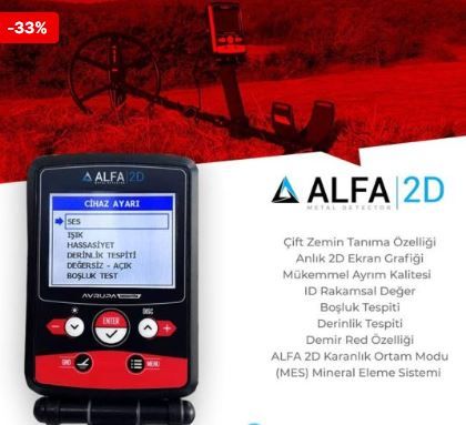 Alfa 2D klasik dedektörlerden farklı olarak; renkli ekran üzerine kurulu, kullanımı kendi sınıfının en kolay sistemine sahip, çok yönlü bir metal dedektörüdür. ALFA 2D bu serisinde derinlik, kolay kullanım, ayrım ve stabilize çalışması yönüyle diğer kendi sınıfındaki dedektörlerden bir adım öndedir. Derinlik ,ayrım kullanım kolaylığı ile yüksek performans alabileceğiniz ALFA 2D Dedektör kullanıcıları arasında en beğenilen modellerden biridir. ALFA 2D metal dedektöründe, 2 adet osiloskop eğrisi ve çift 2D ekranlı tespit modu vardır. Bu özelliği sayesinde metal ve boşlukları, gerçek zamanlı çizim yaparak; ekrana 2D grafik olarak aktarır. ALFA 2D kullanıcılarının daha kısa sürede net sonuç almaları için geliştirilmiş bir metal dedektördür. Bir çok metal dedektör de olmayan özellikleri bünyesinde bulunduran Alfa ile ister metal, ister boşluk tespiti artık hem kolay hem stabil.