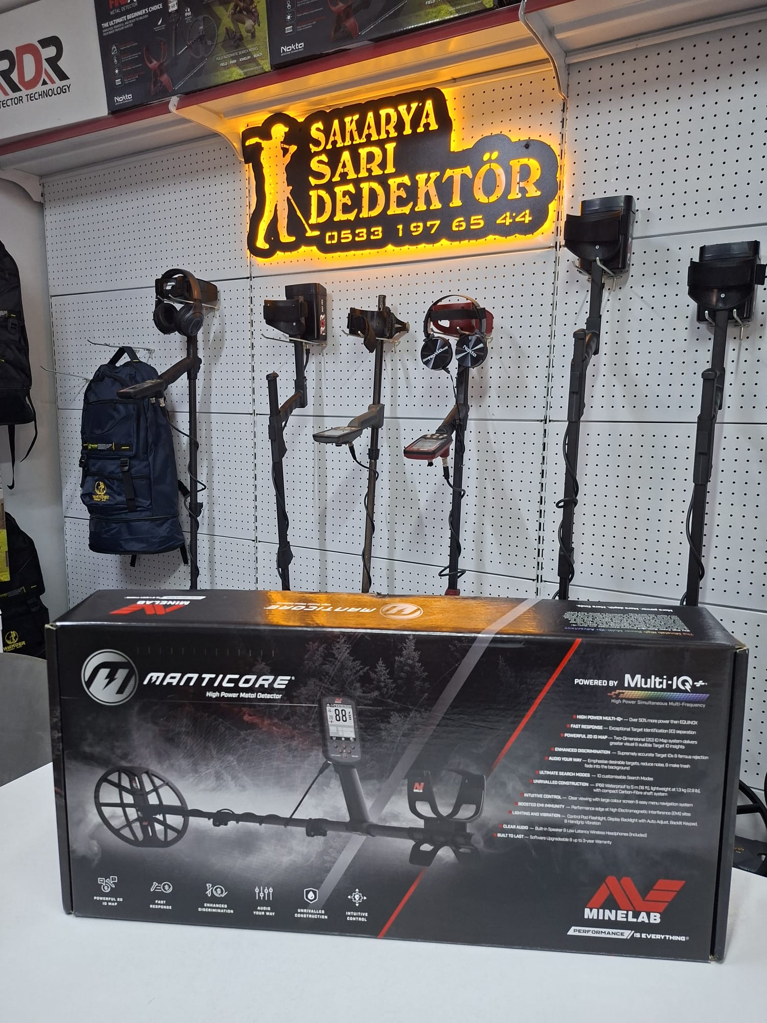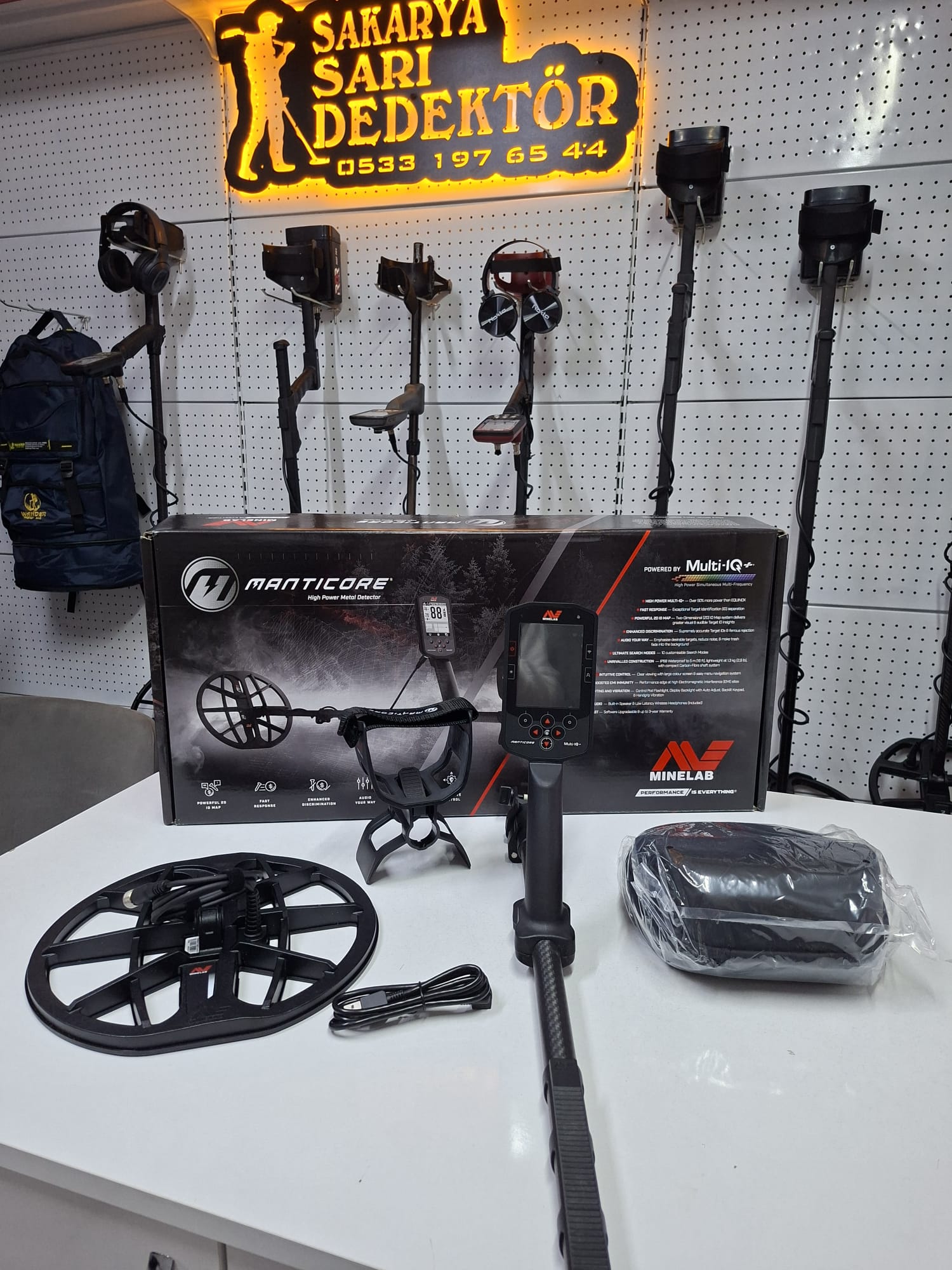 Manticore, geliştirilmiş hedef yapısı sayesinde diğer dedektörlerden daha yüksek performans gösteren bir cihazdır. Özellikle demir içeren madeni paralar ve karmaşık demir içeren hedefler gibi cisimler arasında hedef ayırma özelliğine sahiptir. Aynı zamanda hafif ve hacimli yapısı ile kompakt bir cihazdır ve 5 metreye kadar su geçirmezlik özelliğine sahiptir. Cihaz, özelleştirilmiş 10 arama moduna sahip ve küçük altın parçaçıkları için uyarlanmıştır. Tüm arazi şartlarına göre uyarlanmış cihaz, her türlü kullanım kolaylığı.Manticore dedektörü, piyasadaki diğer dedektörlerle karşı üstün kullanıma sahip hedef ayırma performansına sahip bir cihazdır. Demir atıklar arasında hedefinizi en iyi şekilde ayıran bir dedektördür.