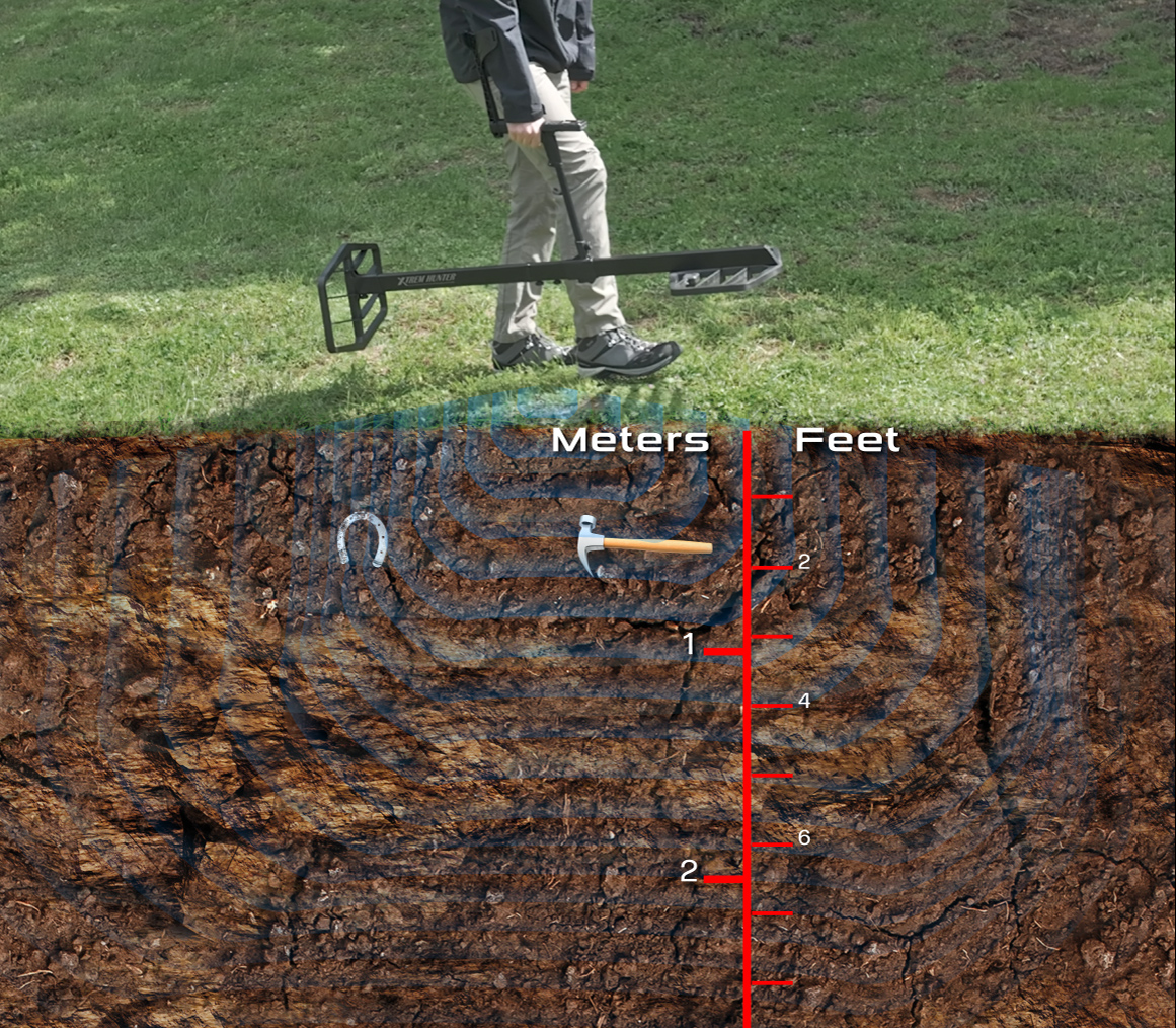 Not: Metal dedektörlerinin bir hedef tespit edebilen derinlik değerlerini birçok faktöre bağlı olarak değişkenlik gösterir. XP XTREM HUNTER dedektör modeli tüm şartların yerine gelmesi durumunda 5 metreye kadar tespit olanağı sunar. Bu da bu modeli dünyanın en derin arama dedektörü yapıyor.